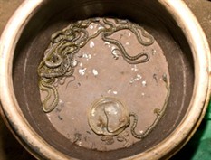 - Dụng cụ ấp trứng rắn của nông dân hiện nay rất đơn giản (một cái lu), lấy đất có độ ẩm 25-30 độ bỏ vào ½ lu, sau đó xử lý thật chặt, tiếp theo rãi thêm 01 lớp cát trải mỏng rồi bỏ trứng rắn vào, dùng bao diêm hoặc vải bịt miệng lu lại, khoảng 75 ngày sau rắn tự nở.